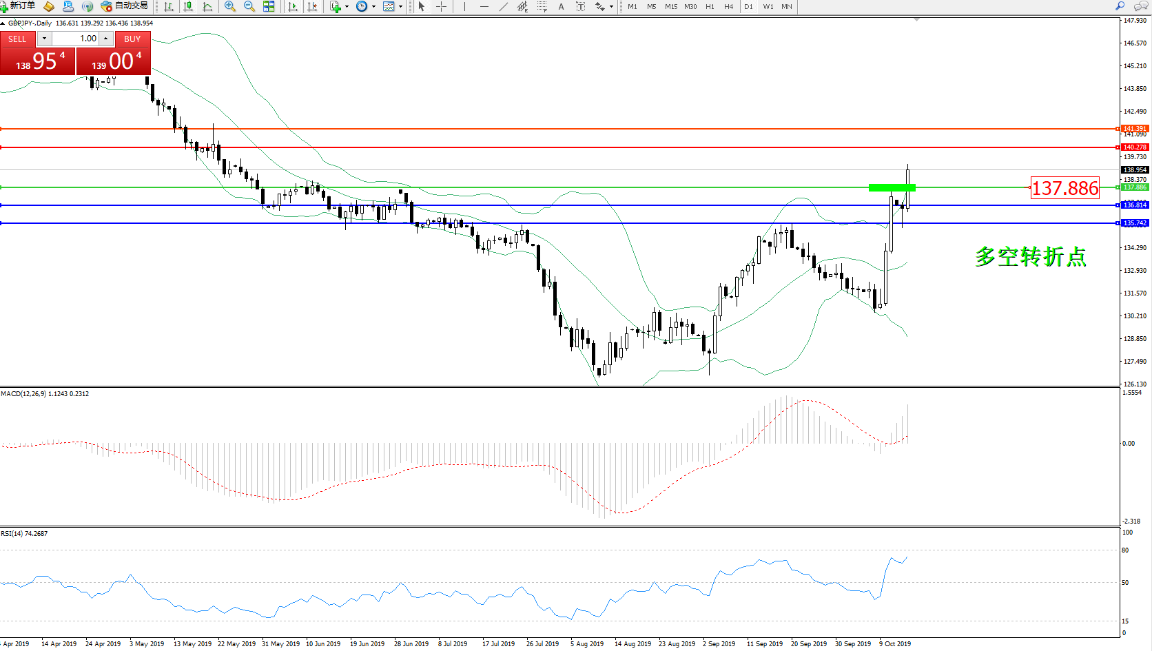 交易策略:137.886上方看涨,目标140.278、141.391