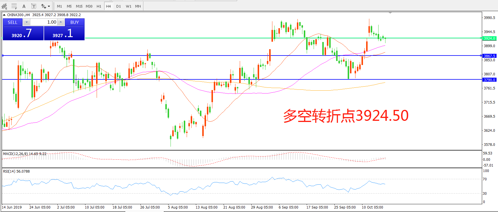 沪深300指数CHINA300 4小时图