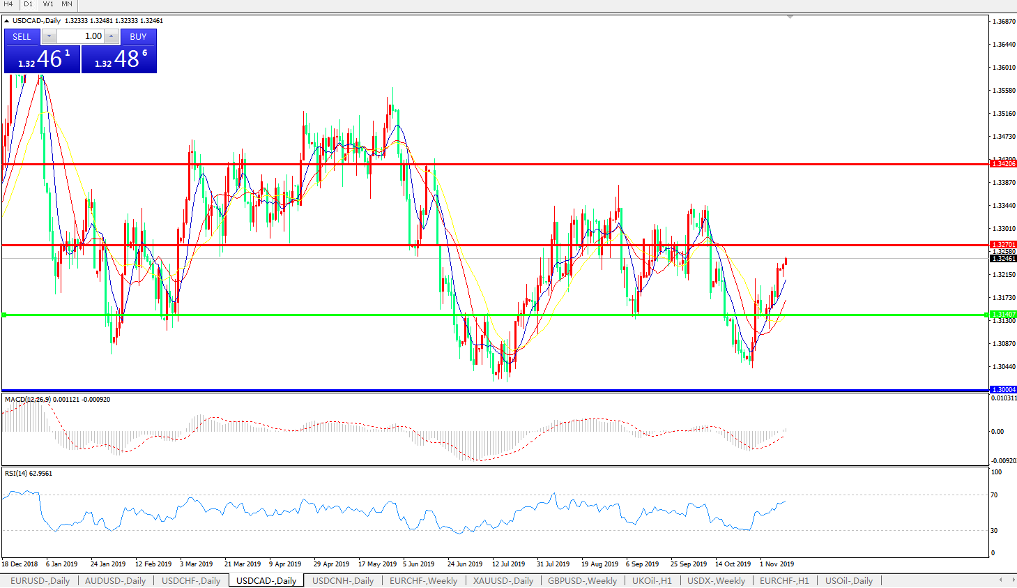 美元兑加元USDCAD 日线图: