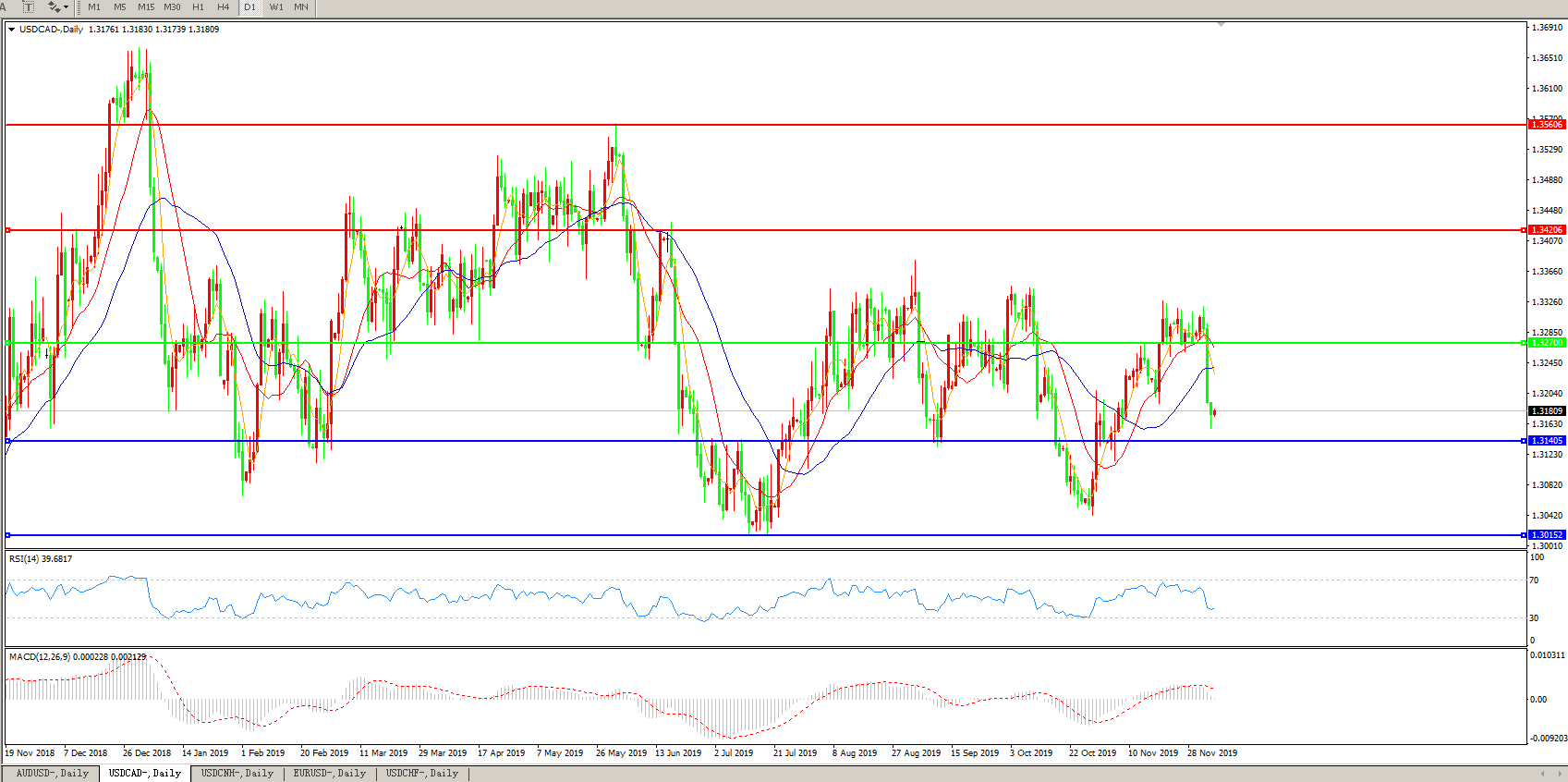 美元兑加元在周三加拿大央行决议前后录得大幅跳跌,回吐了过去一个月以来的涨幅,周四日内美元兑加元继续承压,跌破1.32关口,因投资者预估美加两国经济与货币政策前景将再度出现分化;加拿大央行在周三的决议措辞中对该国经济释放了积极基调,这和美国经济前景自上周以来再遭贸易风险前景困难的局面,正好形成了鲜明的反差。而市场眼下则更密切地关注着之后周五美加两国同时发布的11月份就业数据。而此前美国ADP就业数据意外大幅逊色的状况,已经向投资者给出了提前暗示; 这意味着汇价在连续三次上攻1.33上方的阻力位无果后,正掉头开始新一轮波段行情,短线目标位在9月份的低点1.3134,若失守,则年底之际可能进一步下探至1.3050一线寻觅支撑,但长期来看,1.30心理关口在没有特别“黑天鹅”消息的前提下,仍将无恙