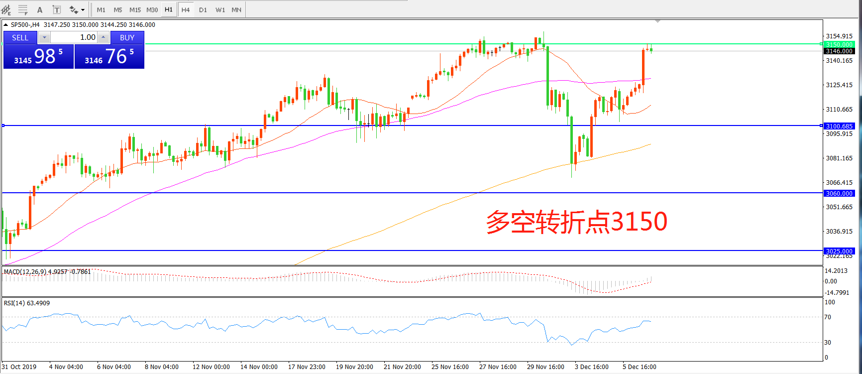 多空转折点:3150.00