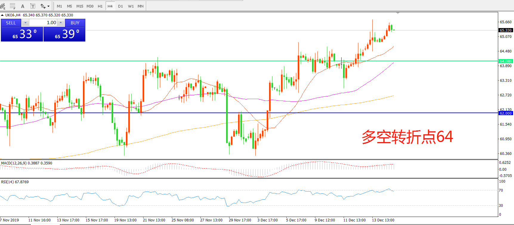 交易策略:在64.00之上看涨,目标66.00    69.50