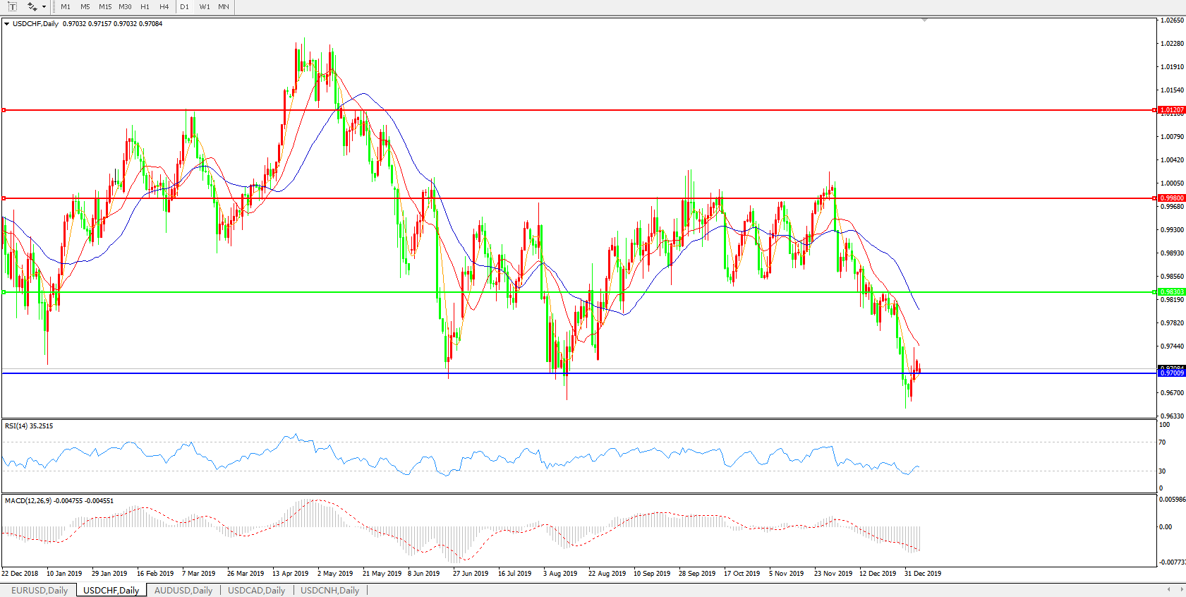美元兑瑞郎USDCHF 日线图: