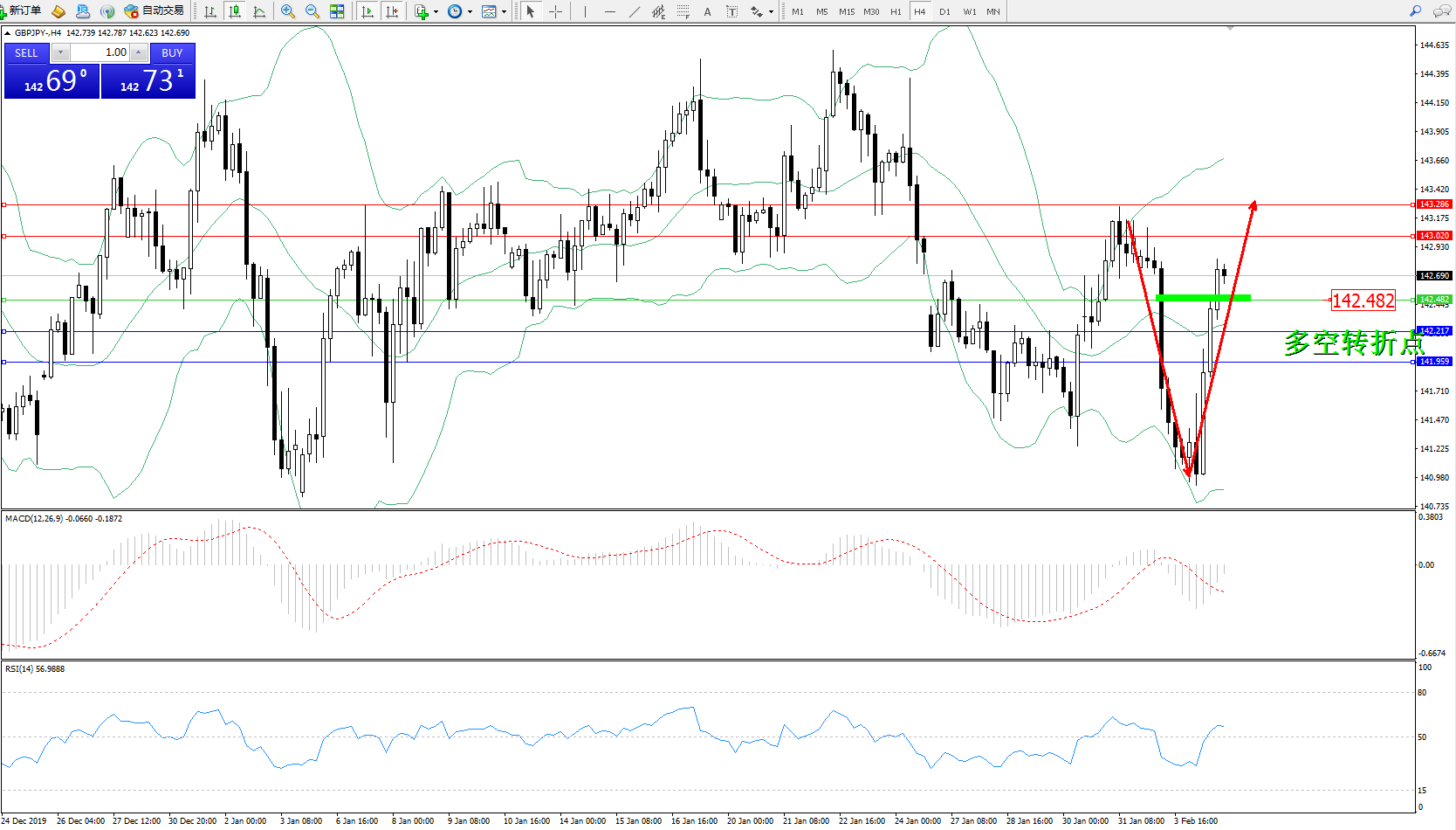 交易策略:142.482上方看涨,目标143.020143.286