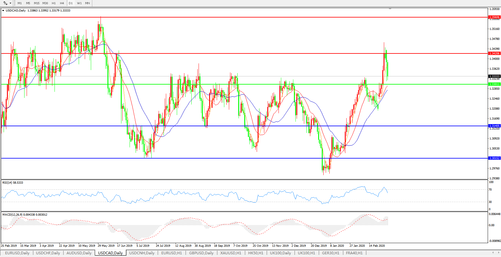 美元兑加元USDCAD 日线图: