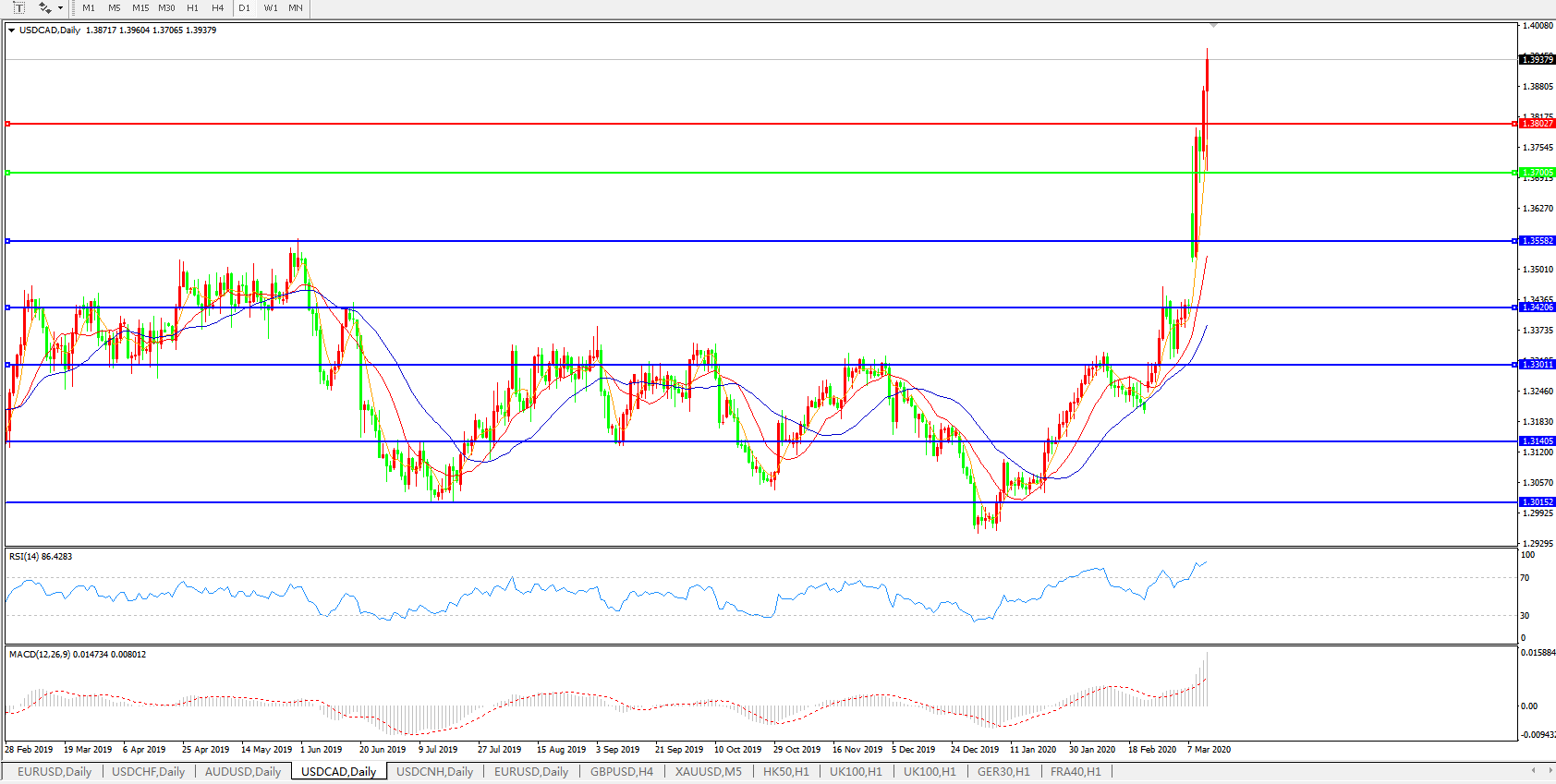 美元兑加元USDCAD 日线图: