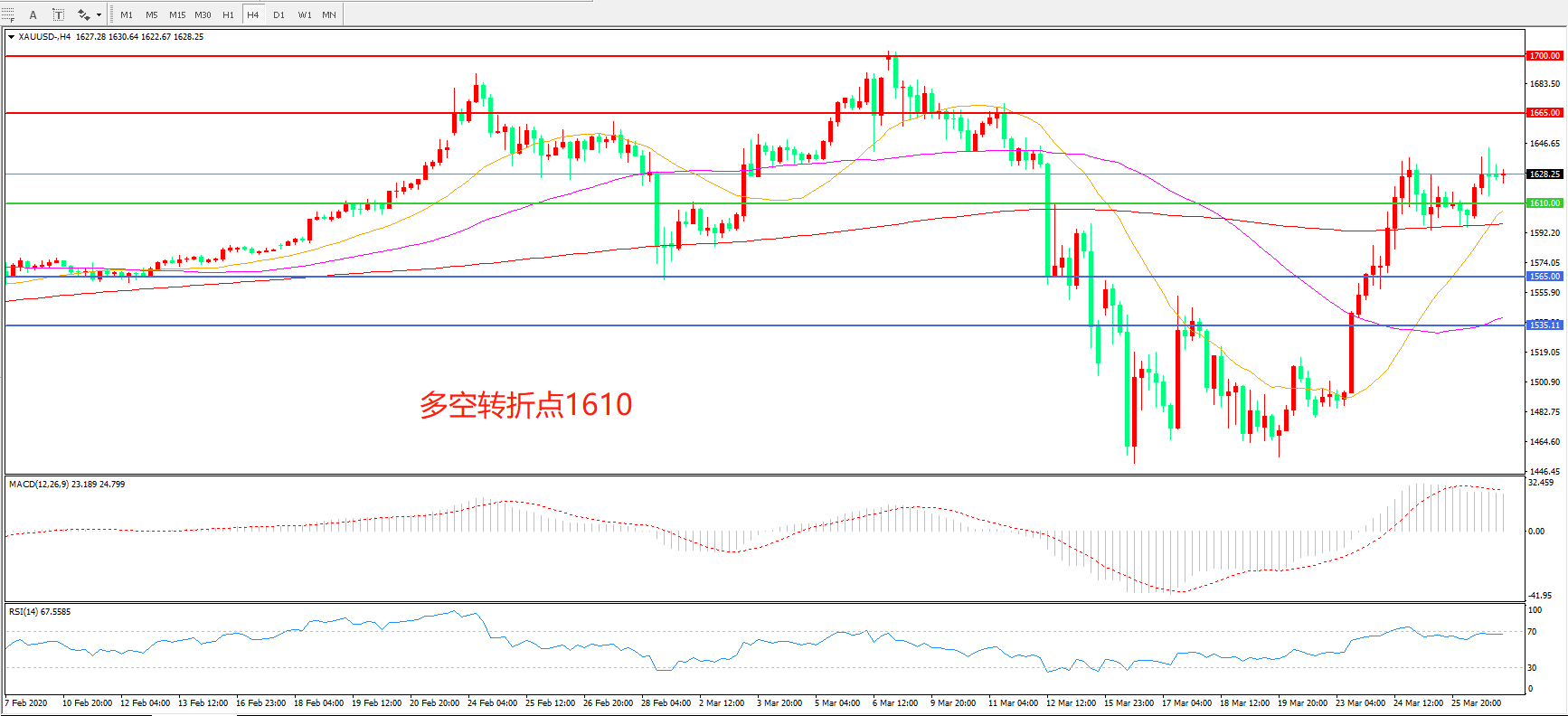 现货黄金XAU/USD    4小时图