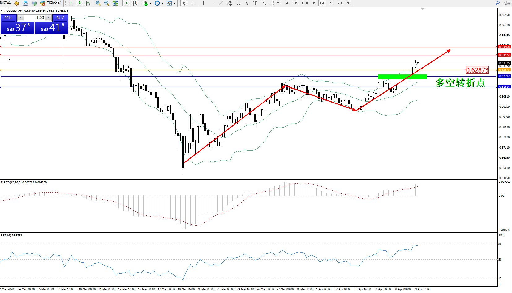 澳元美元AUDUSD——4小时K线图显示: