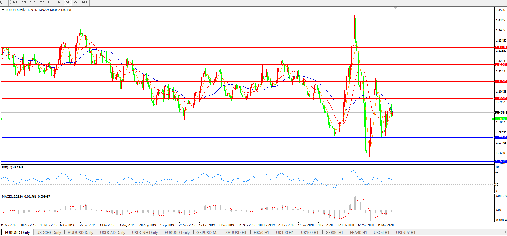 交易策略:1.0880上方看涨,目标1.1000、1.1100