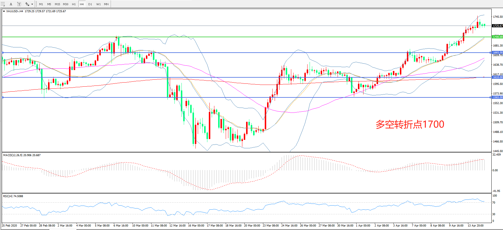 周二(4月14日),随着新冠疫情肆虐全球经济,并引发大规模刺激计划出台,投资者纷纷涌入黄金避险,现货黄金再度飙涨,冲击1750后小幅回落后收报1724美元/盎司,创逾88个月新高!从近几日黄金表现来看,金价已经确认突破了1700美元关口,巩固了市场对于金价在中短期内进一步上涨的预期。