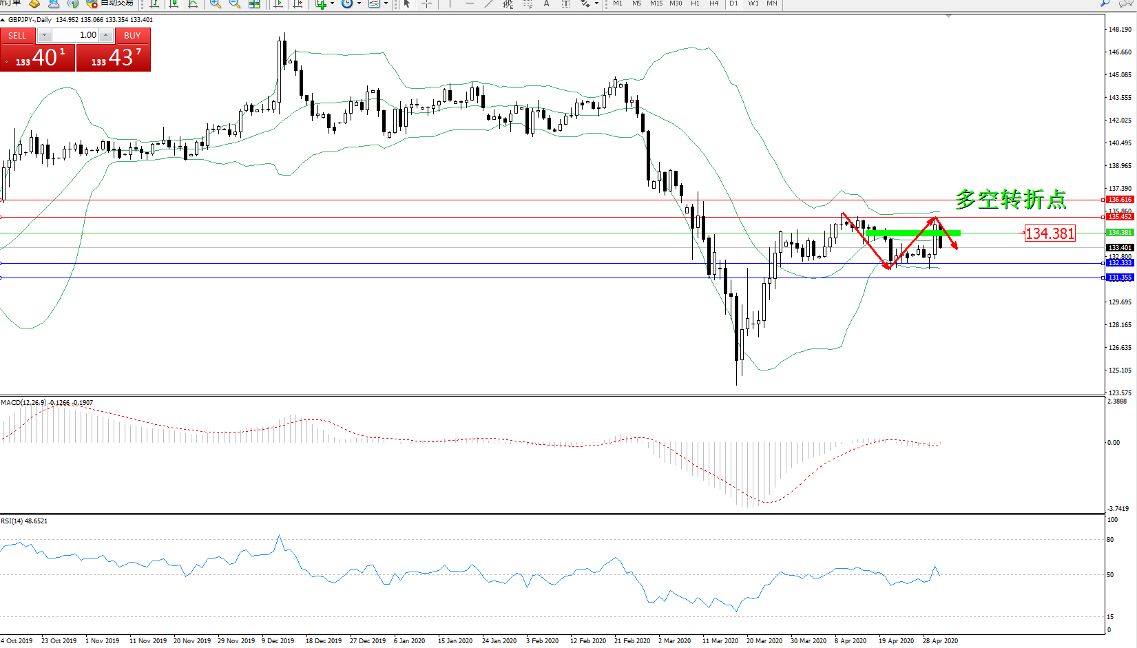 交易策略:134.381下方看跌,目标132.333131.355