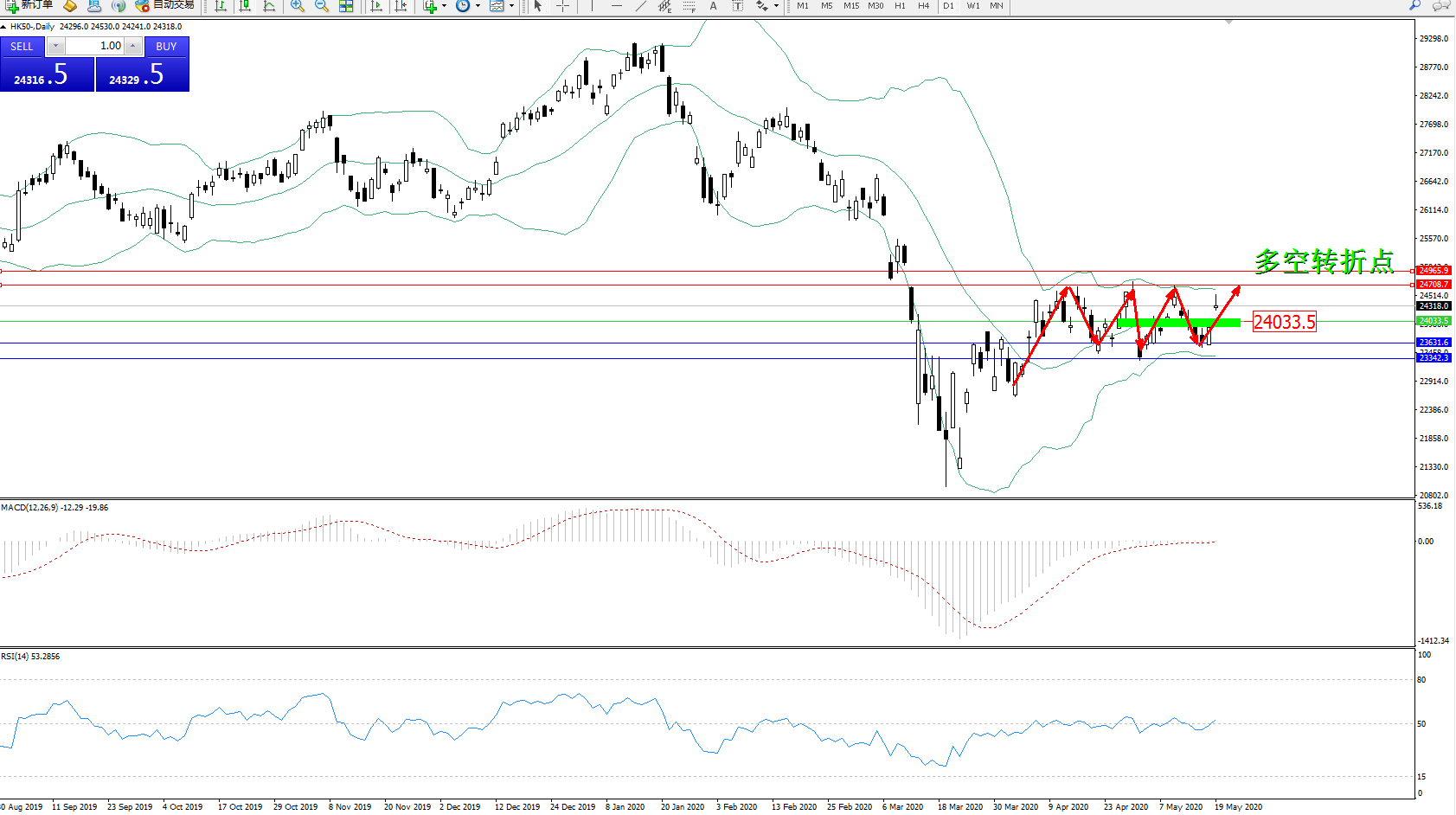 恒指HK50 ——日K线图显示: