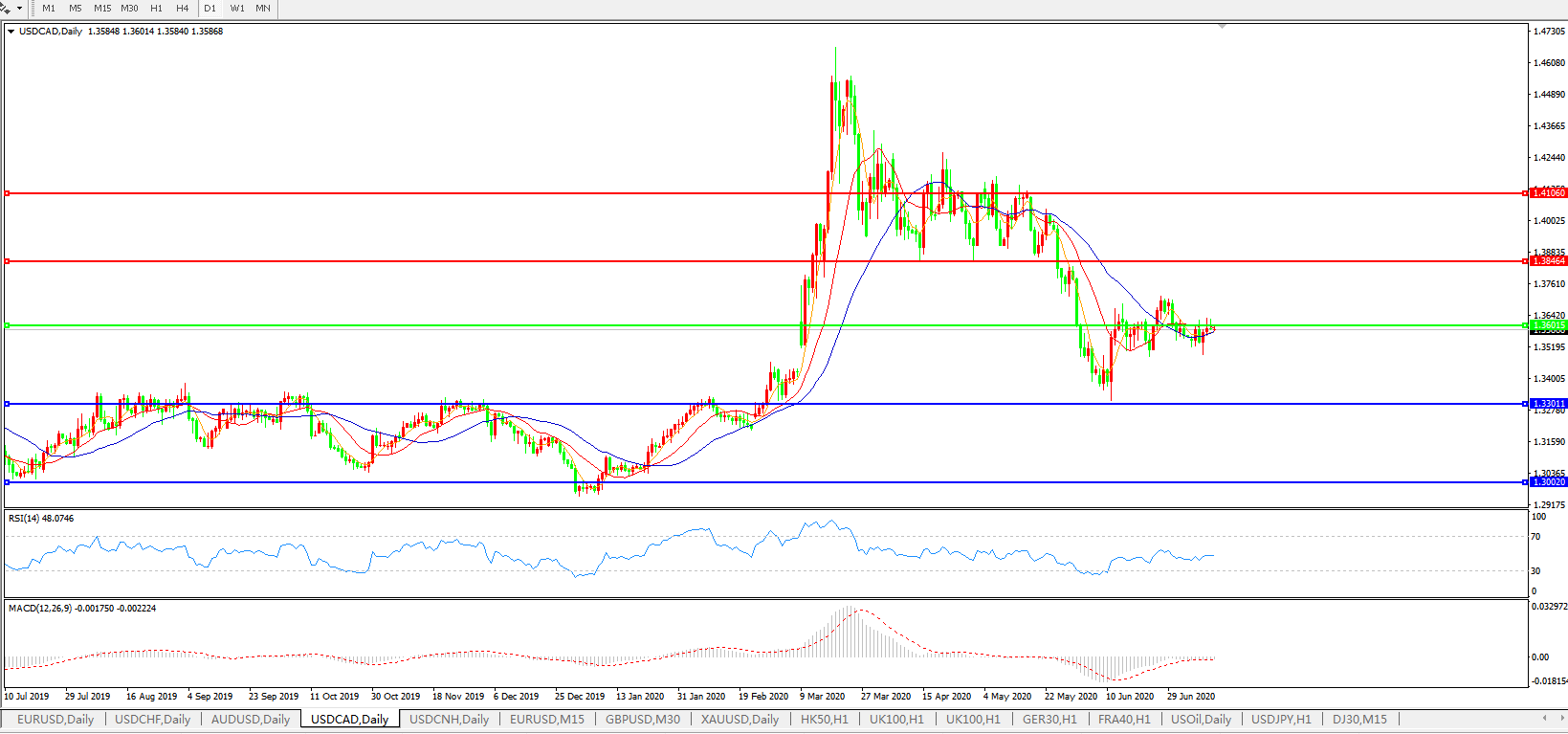 美元兑加元USDCAD 日线图: