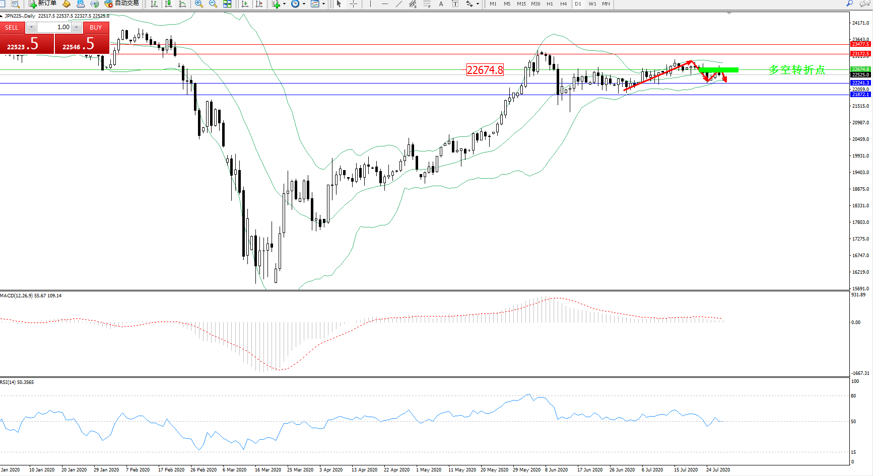技术点评:长时间纠结于布林带指标通道内持续窄幅震荡持续平移中,布林带指标呈收口走势逐渐向上移动中,多头动力纠结于中轨附近持续震荡,关注中轨附近转折点,MACD指标处于0轴线上方多头区域持续整理已有数月之久,RSI指标空头动力下破50均衡线后再次回升至多头区域徘徊;