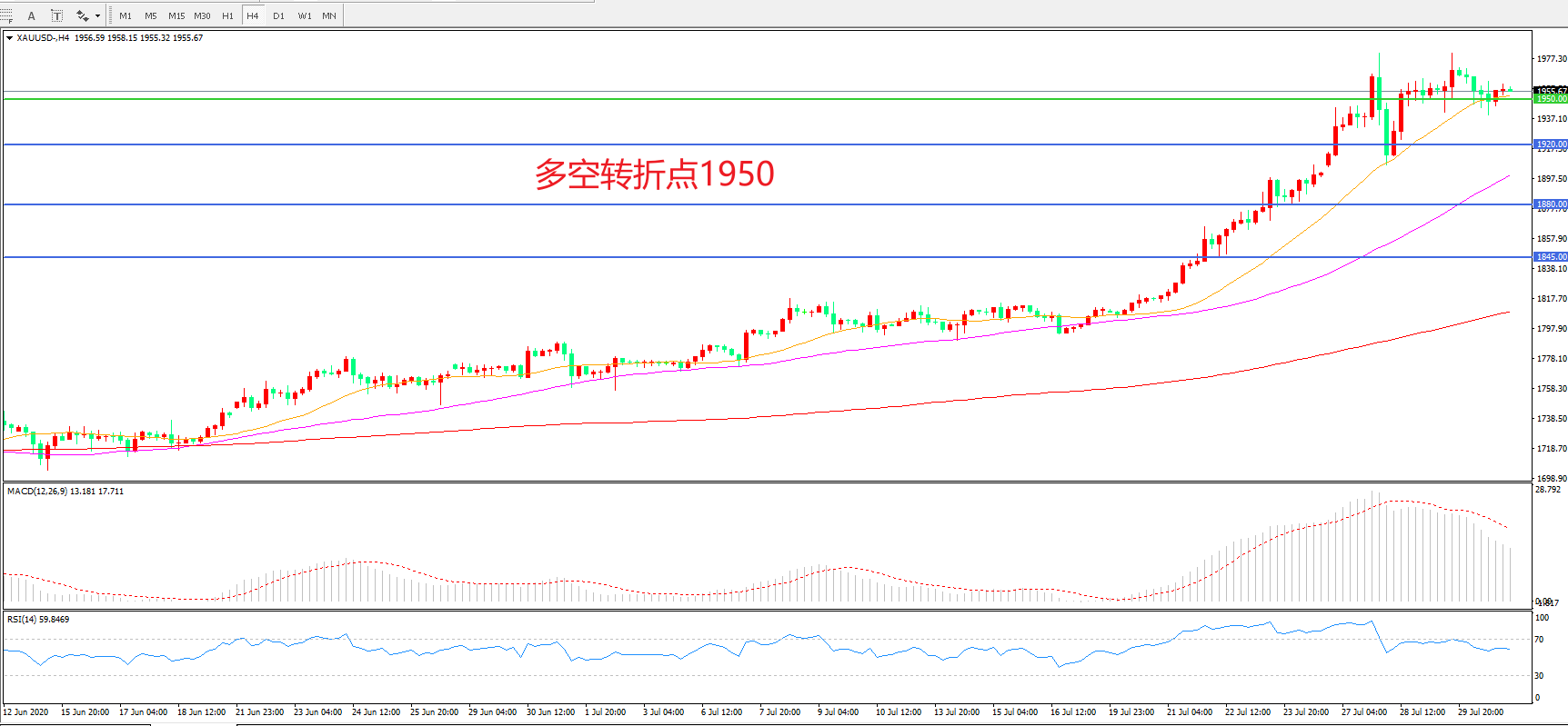多空转折点:1950.00