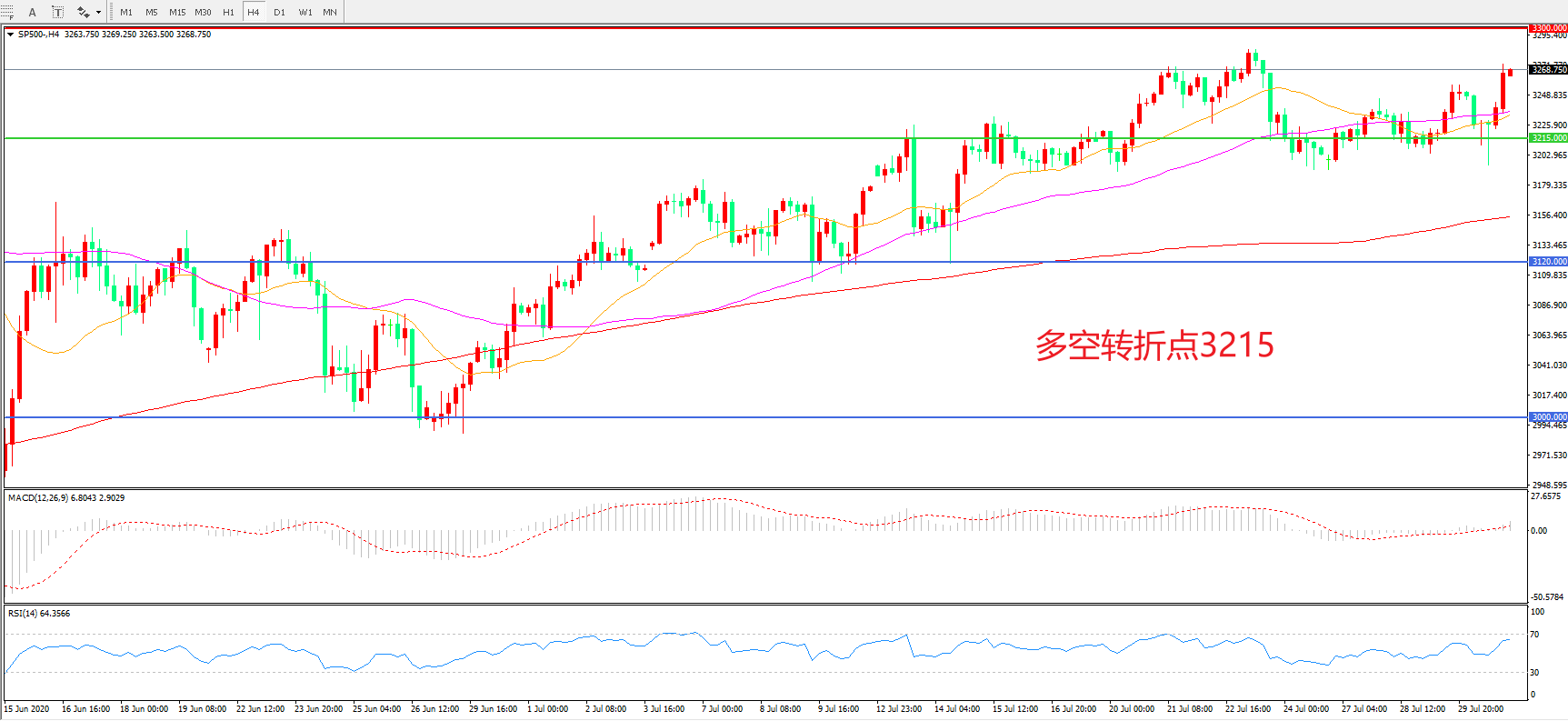 多空转折点:3215.00