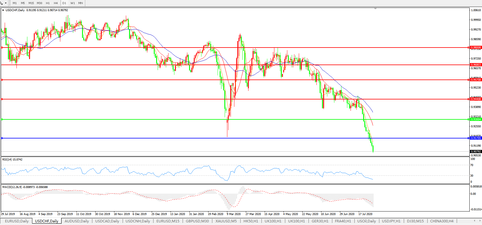 美元兑瑞郎USDCHF 日线图: