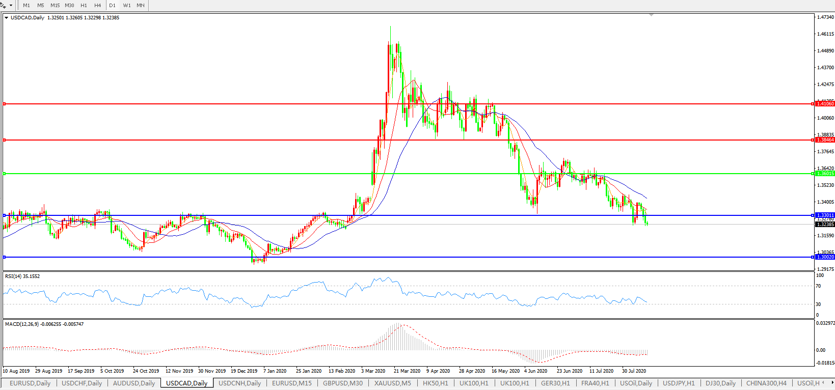 美元兑加元USDCAD 日线图: