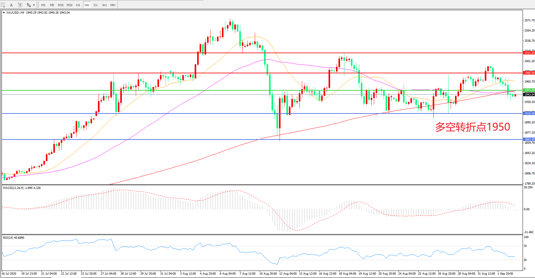 交易策略:在1950.00之下看跌,目标1910.00   1865.00