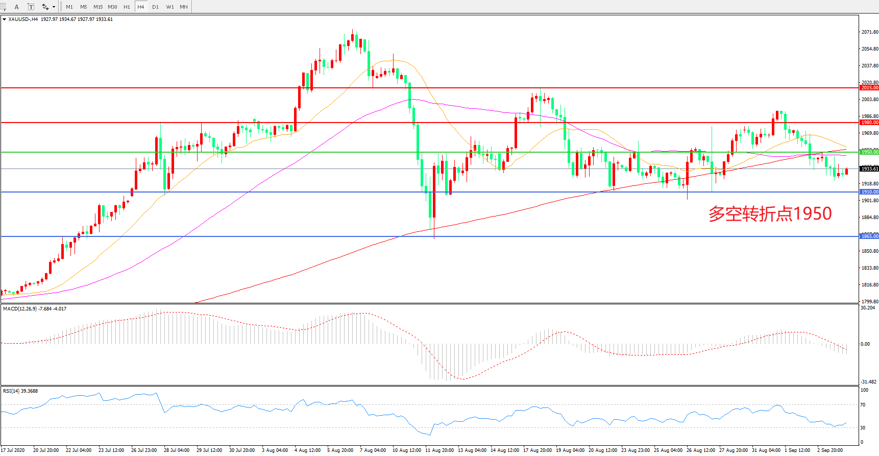 交易策略:在1950.00之下看跌,目标1910.00   1865.00