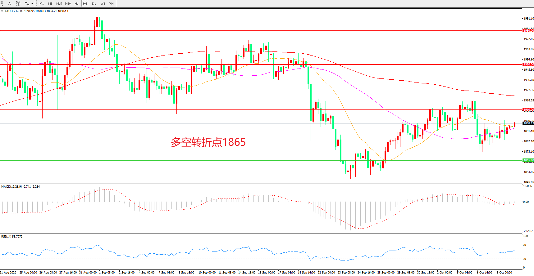 多空转折点:1865.00