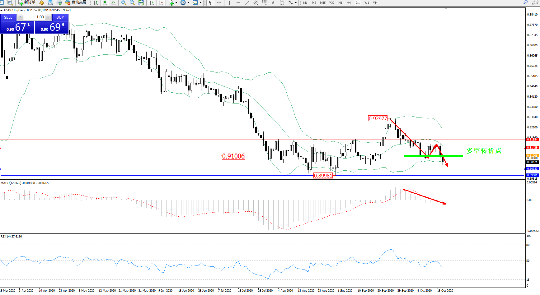 交易策略:0.91006下方看跌,目标0.90323、0.89981