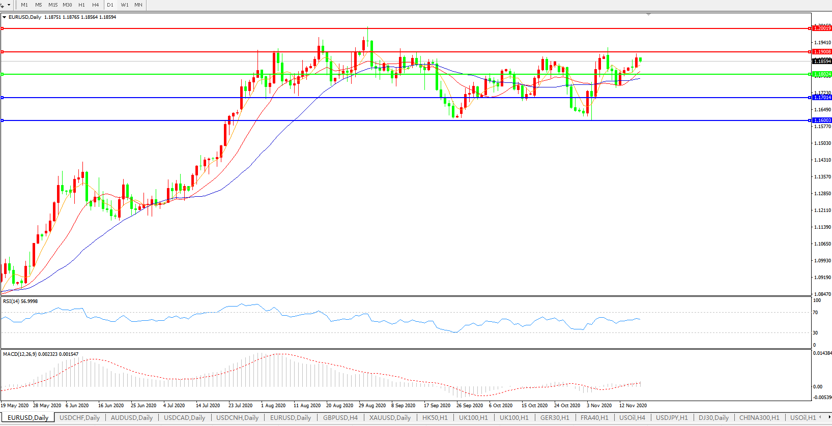欧元兑美元EURUSD   日线图: