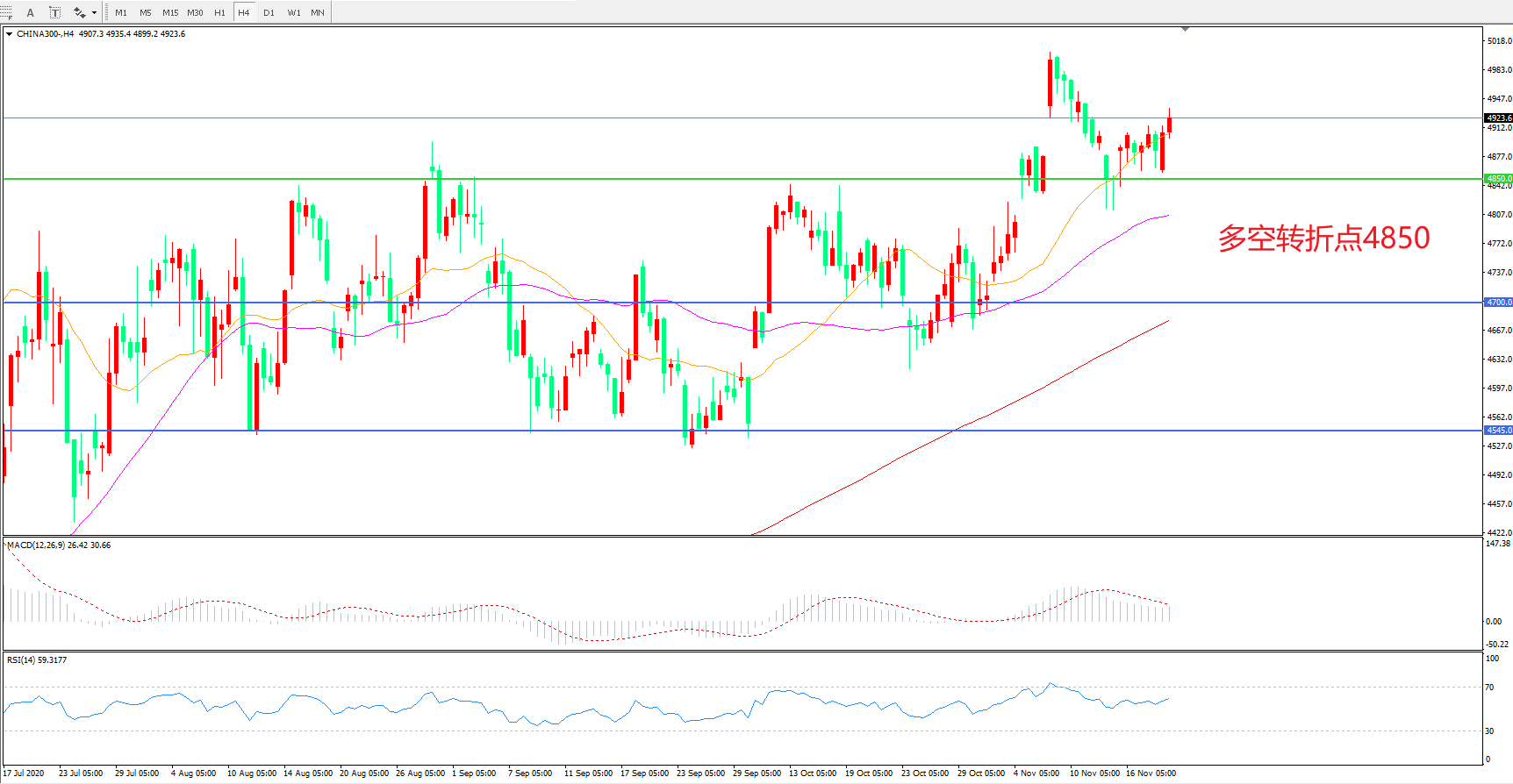 多空转折点:4850.00