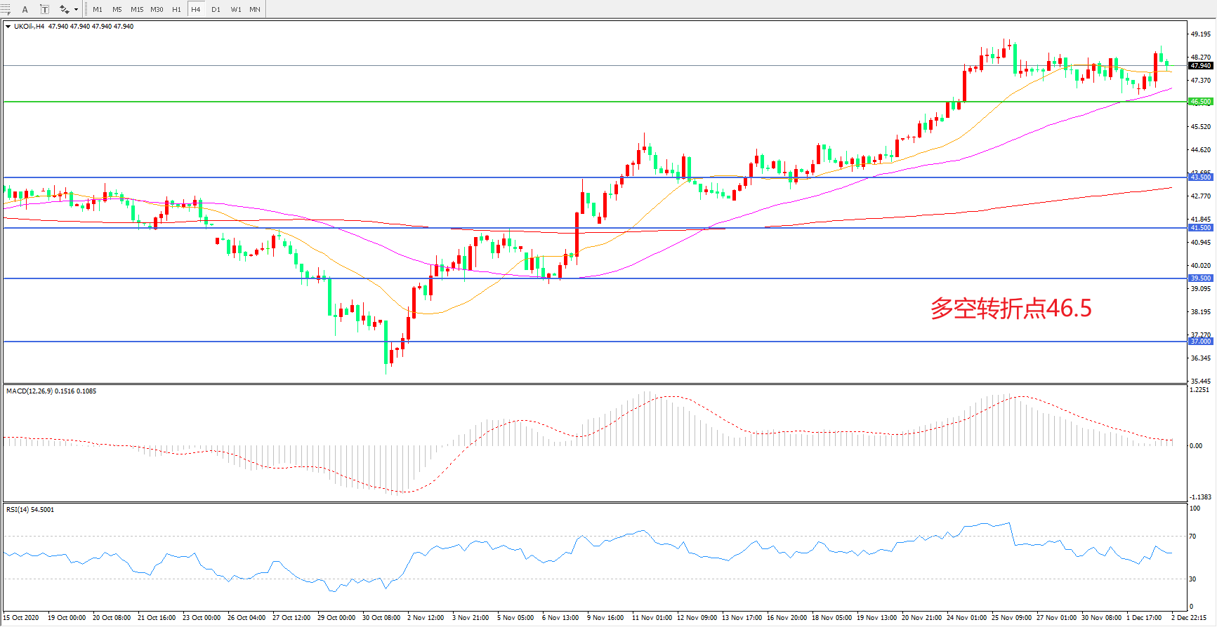 交易策略: 在46.50之上看涨,目标50.00 53.00