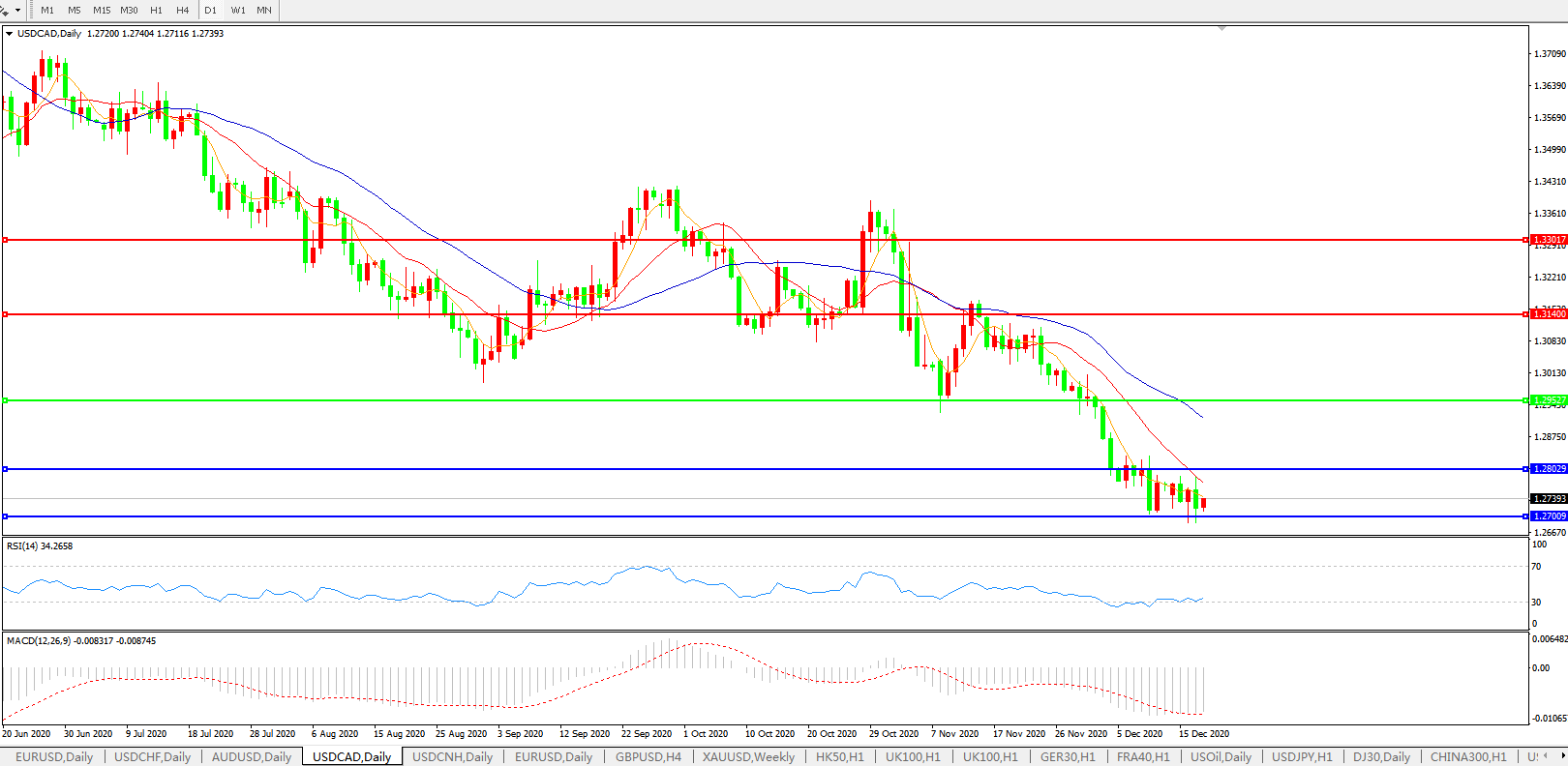 美元兑加元USDCAD 日线图: