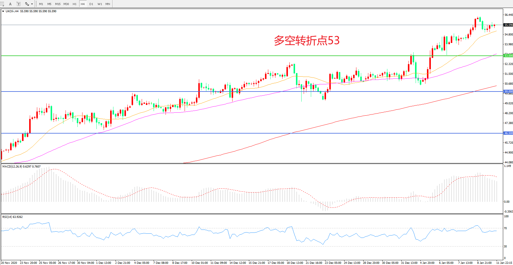 交易策略: 在53.00之上看涨,目标57.00 60.00