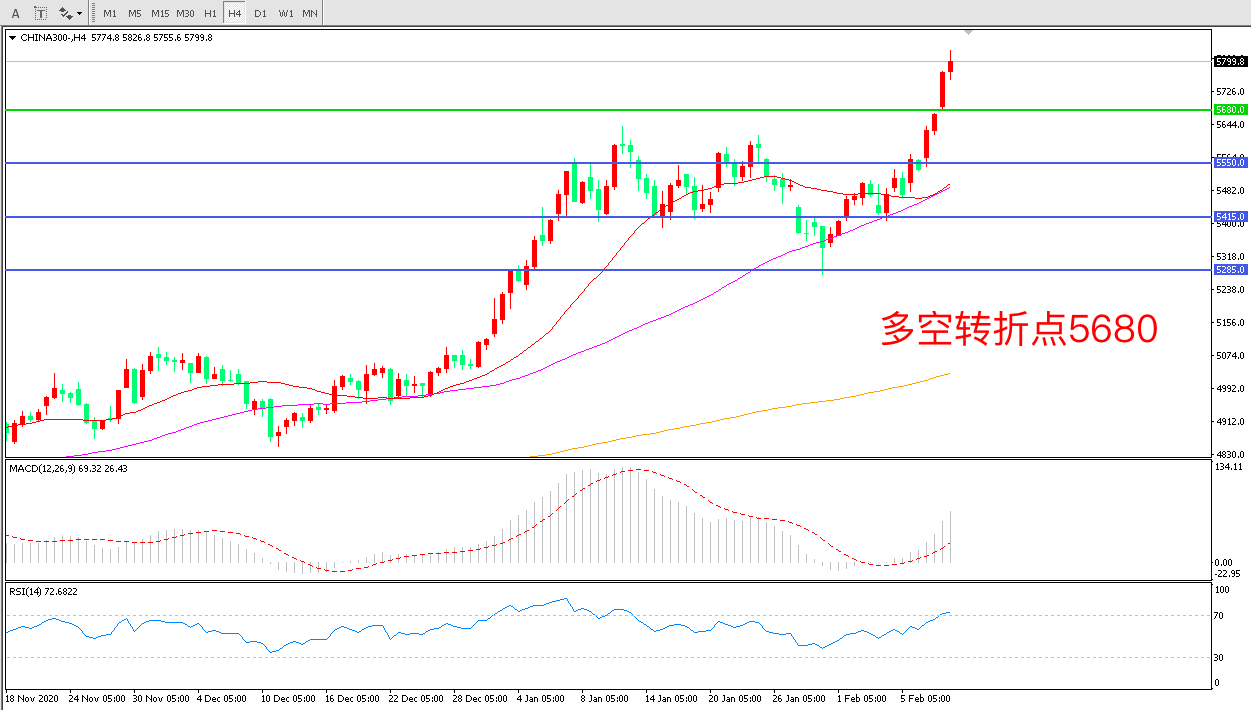 交易策略:在5680.00之上看涨,目标5800.00 5950.00