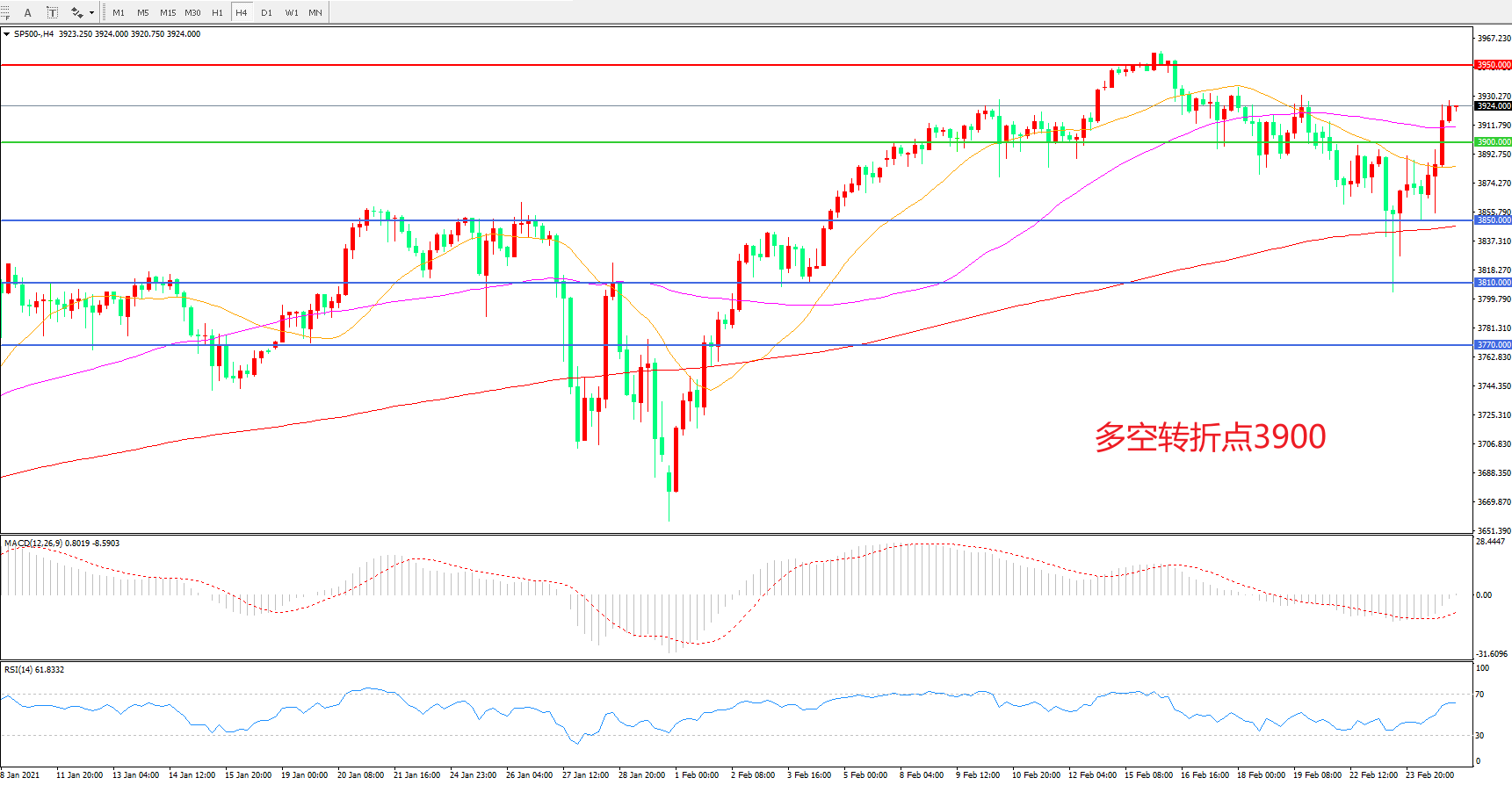 周三(2月24日),由于美债收益率持续走高,美股集体小幅低开,但随后鲍威尔在国会重申恢复劳动力市场任重道远,打算维持超低利率并继续进行大量资产购买,安抚了市场,又提振了市场信心,标普500大幅反弹,收报3923.25点。大型科技股涨跌不一,Facebook从跌2.8%变为收跌0.6%,谷歌t从跌1.6%转而收涨超1%。