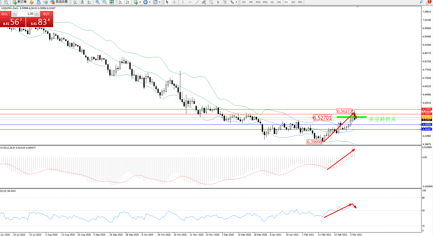 交易策略:6.52701下方看跌,目标6.48996、6.46483