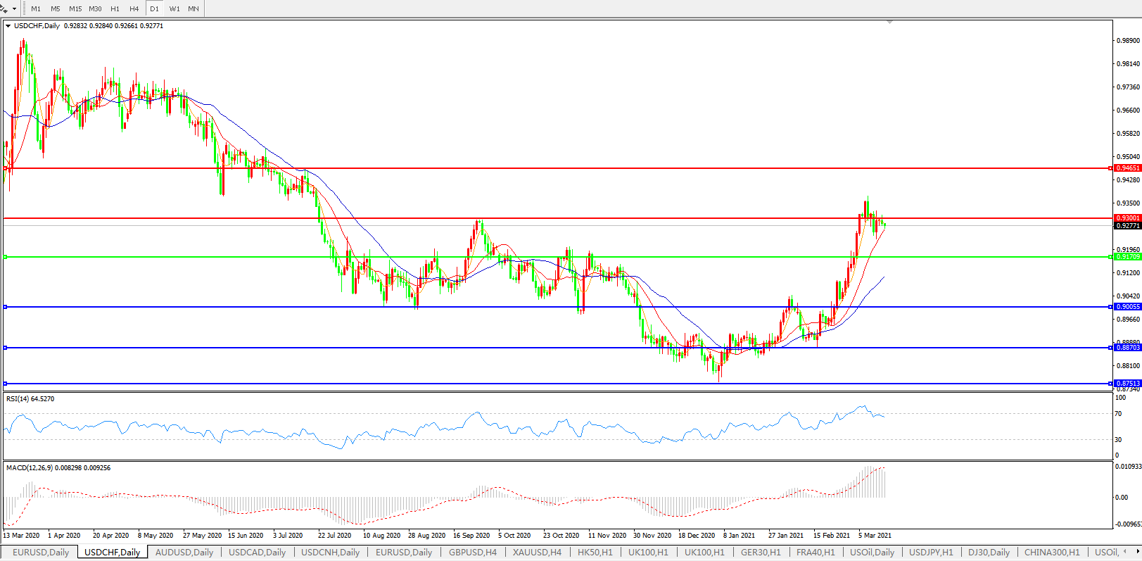 美元兑瑞郎USDCHF    日线图: