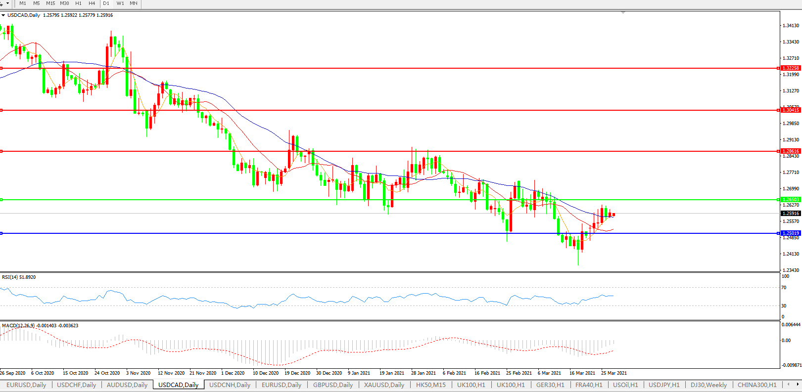 美元兑加元USDCAD    日线图: