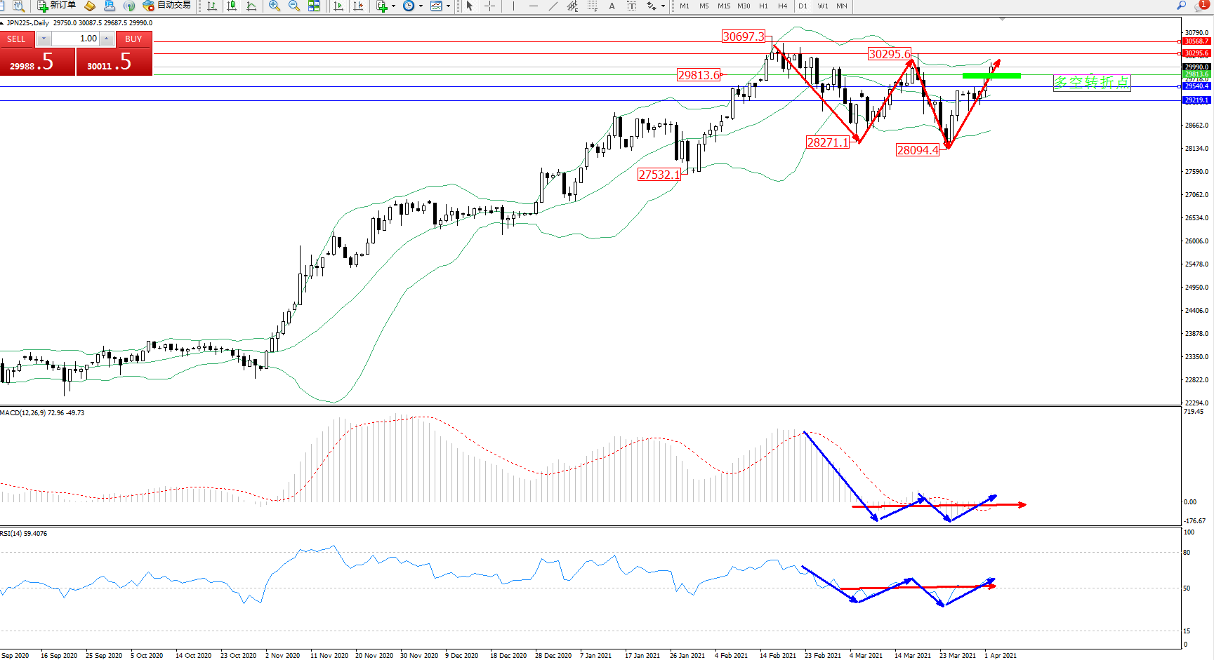 日经225指数4月2日(周五)收盘上涨478.63点,涨幅1.63%,报29867.50点。日本内阁官房长官加藤胜信:日本首相菅义伟计划与拜登于4月16日在华盛顿举行峰会。日本首相和美国总统拜登的会面被推迟,将采取一切可能的措施来保证会晤成功。本财务大臣麻生太郎:拒绝就Archegos爆仓事件对特定公司的影响置评。并不认为Archegos事件将影响金融公司的健康。野村证券、三菱日联的损失不太可能导致重大问题。日本金融厅需要与日本央行分享有关Archegos事件造成的影响的信息。正在监控Archegos事件相关情况。由于局部地区疫情反弹明显,日本首相菅义伟1日宣布,该国部分地区将从4月5日起实施“蔓延防止等重点措施”,加大对这些地区人员活动的防疫限制等;这也是日本首次宣布实施这一措施。据悉,大阪府、兵库县和宫城县三地的大阪市、神户市等六市将从5日起实施,持续到5月5日;上述地区的地方政府将要求餐饮店等商家每天20时后停止营业,对于配合缩短营业时间要求的商家给予一定补贴。