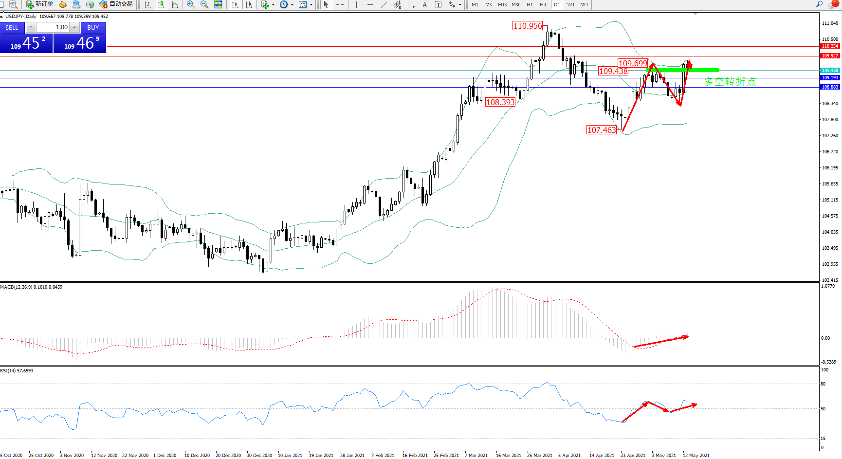 技术点评:多头动力反转上移至布林带指标中上轨区间震荡,触及上轨附近节点后出现短暂回撤整理,多头动力相对强劲,布林带指标呈收口平移走势中,MACD指标纠结于0轴线附近弱势徘徊中;RSI指标处于50均衡线附近震荡后有上移迹象;