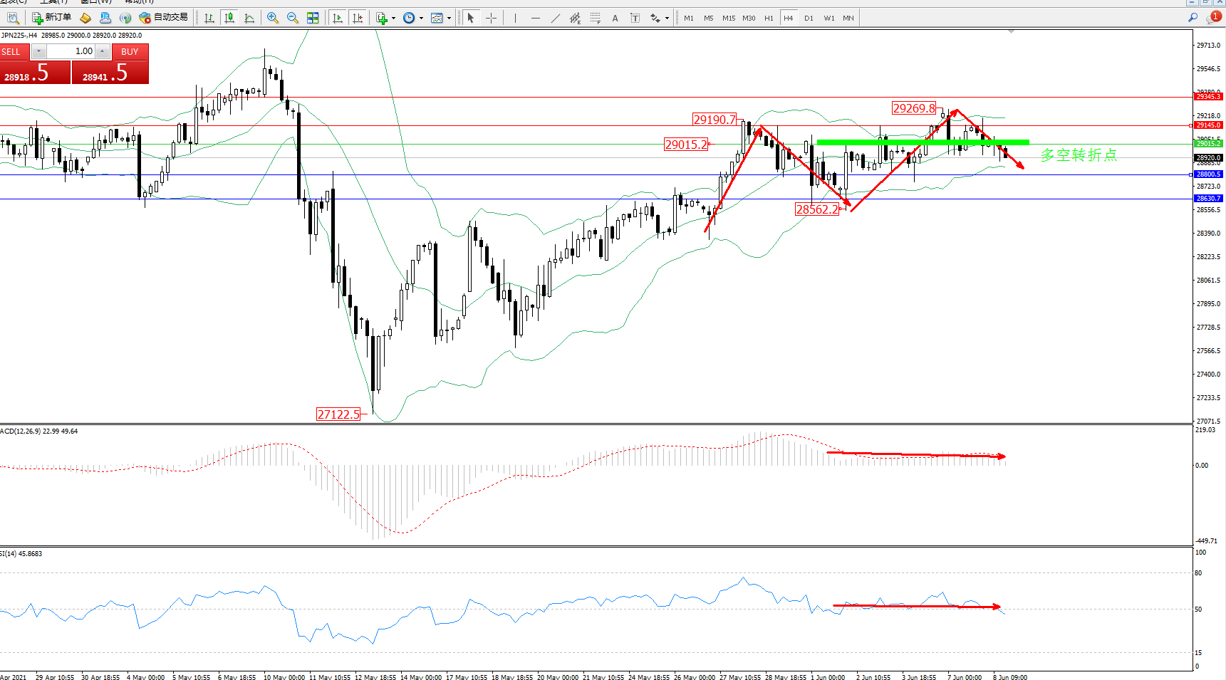 交易策略:29015下方看跌,目标28800、28630