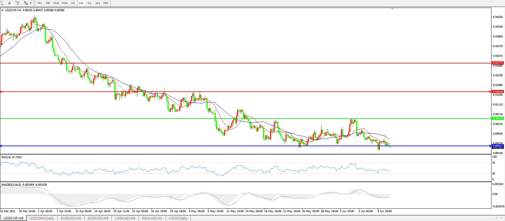技术面简析:4小时图均线发散下行,汇价弱势反弹后再度下行,MACD运行于0轴下且量能0轴下微放量,RSI再度趋于弱势,预计短期汇价大概率将进一步下行。