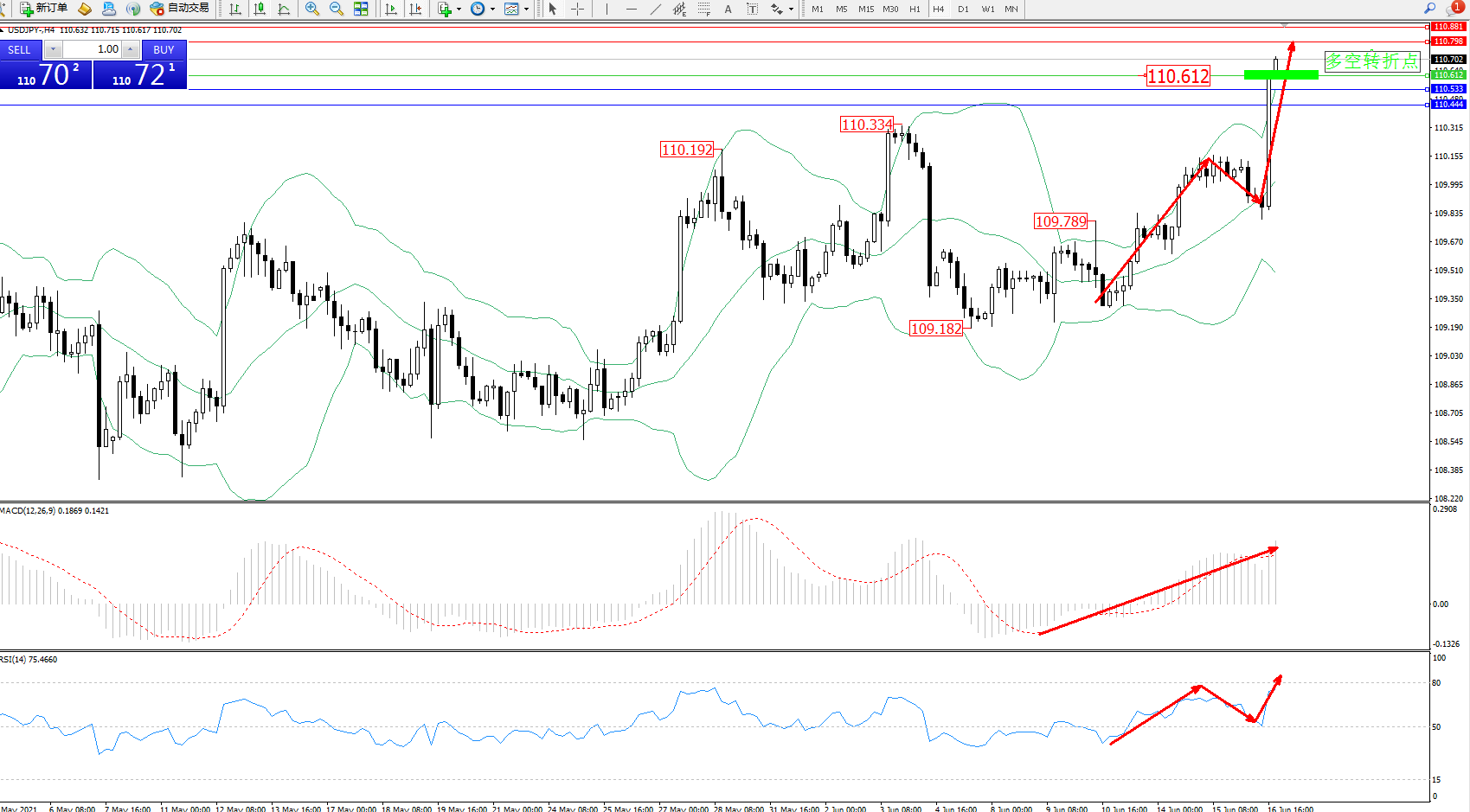 交易策略:110.612上方看涨,目标110.798、110.881
