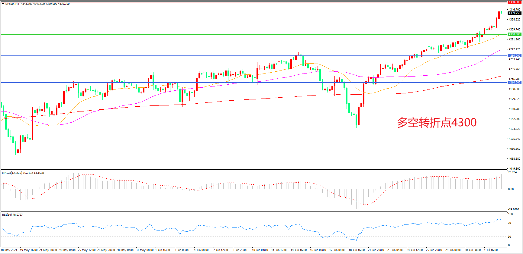 多空转折点:4300.00