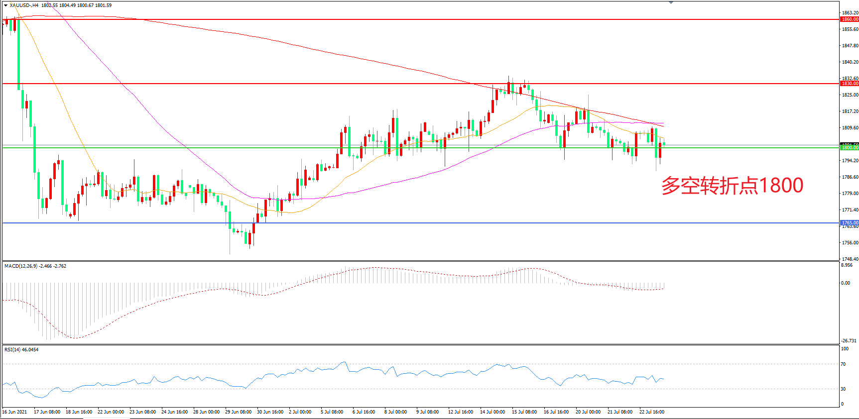 多空转折点:1800.00