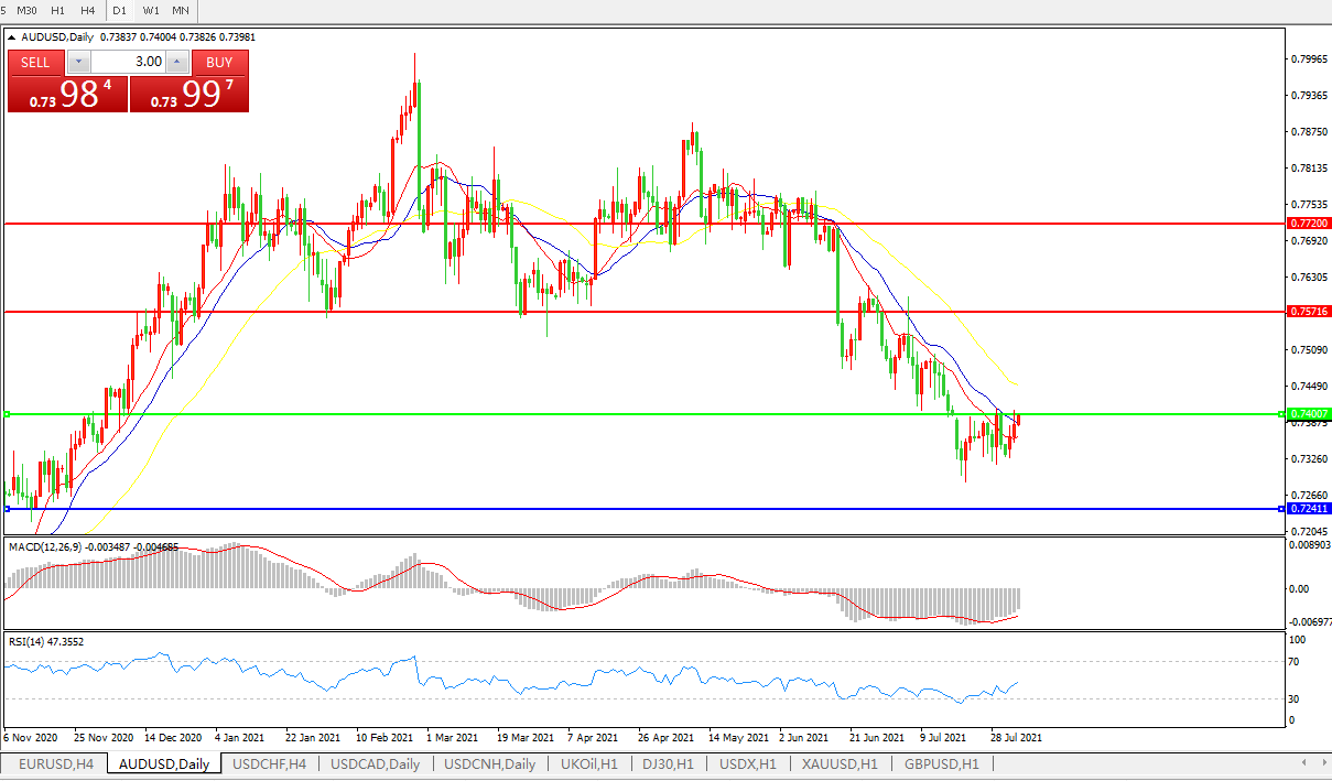 交易策略:0.7400下方看跌,目标0.7240、0.7080