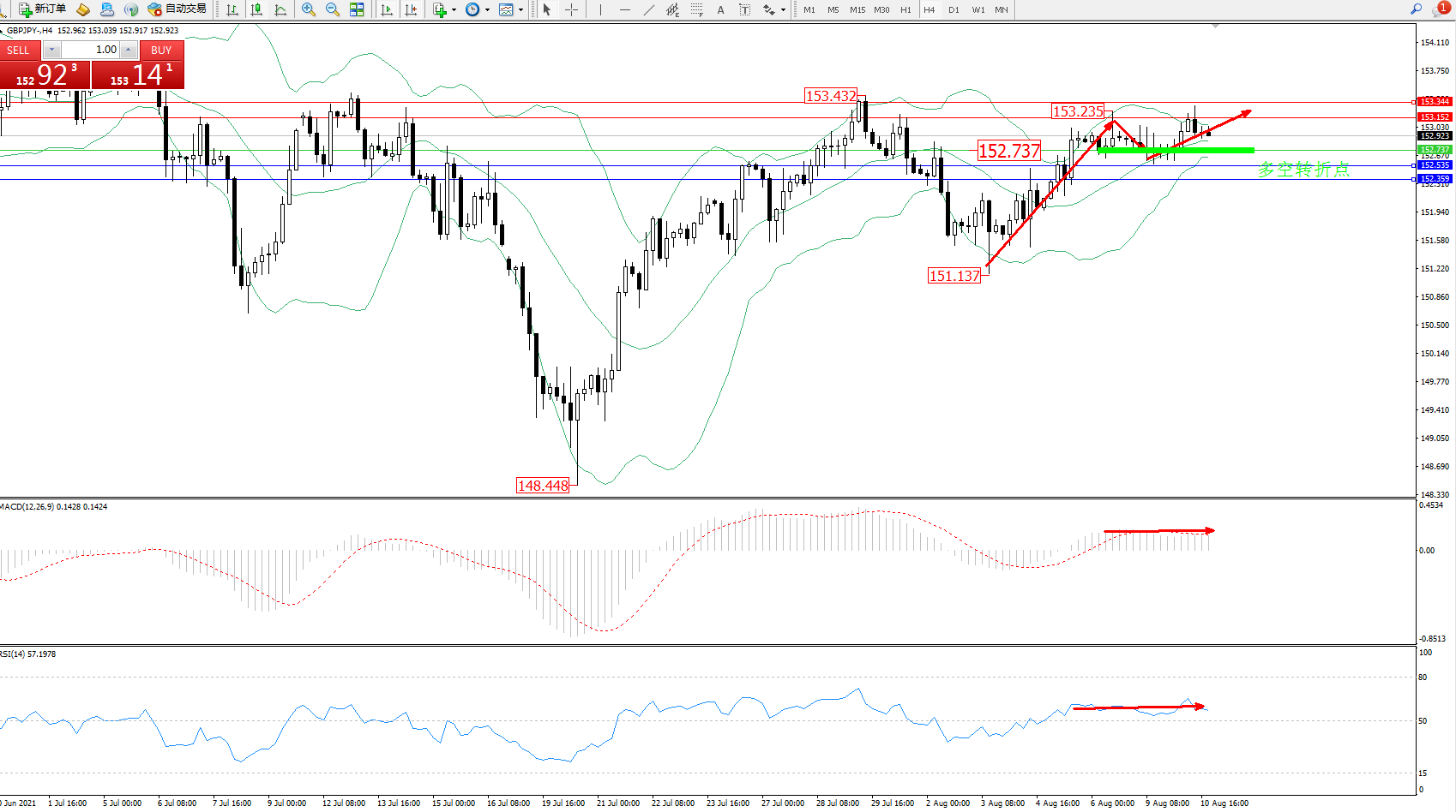 交易策略:152.737上方看涨,目标153.152、153.344