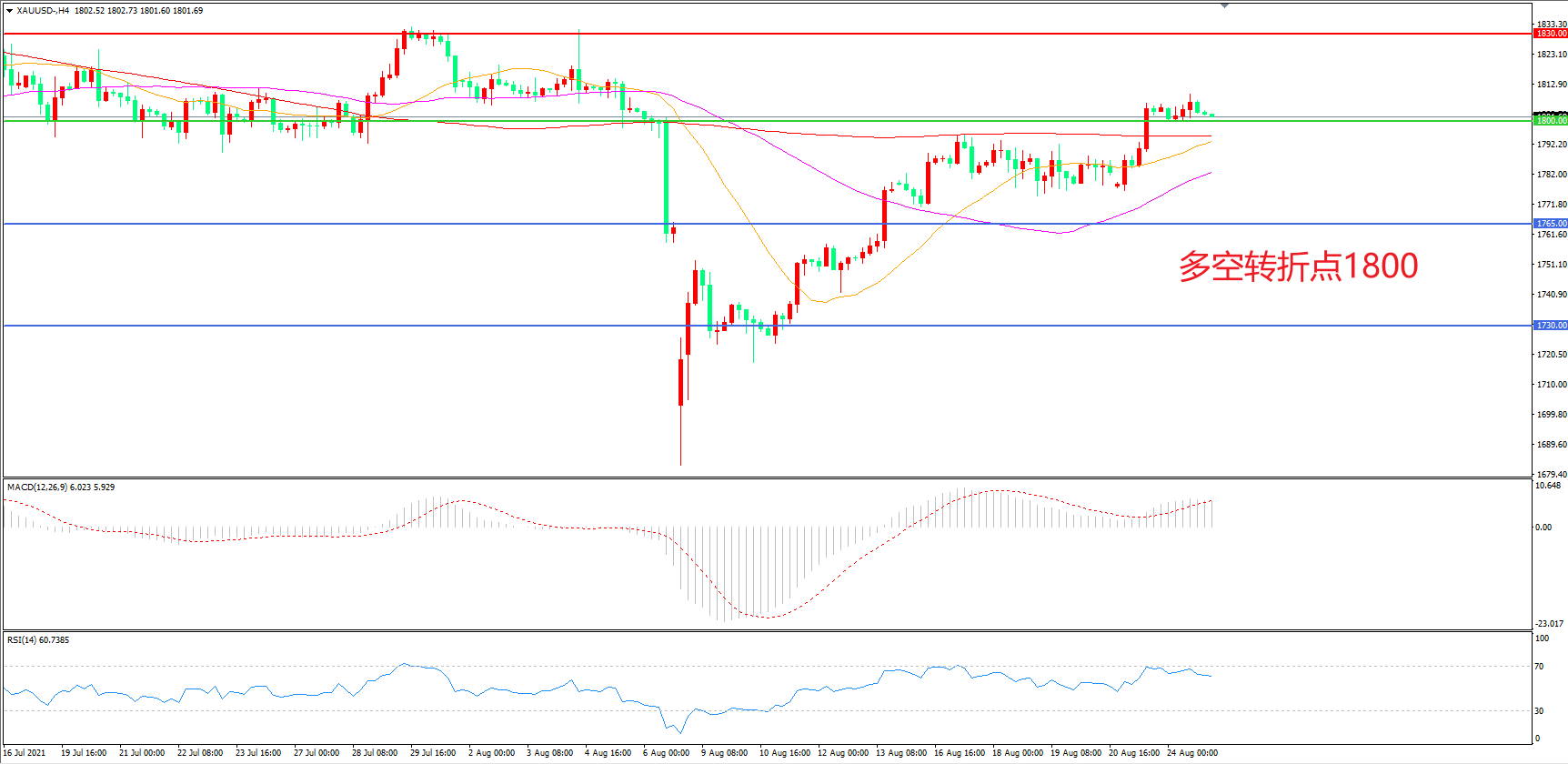 多空转折点:1800.00