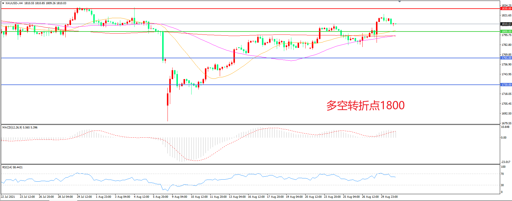 多空转折点:1800.00