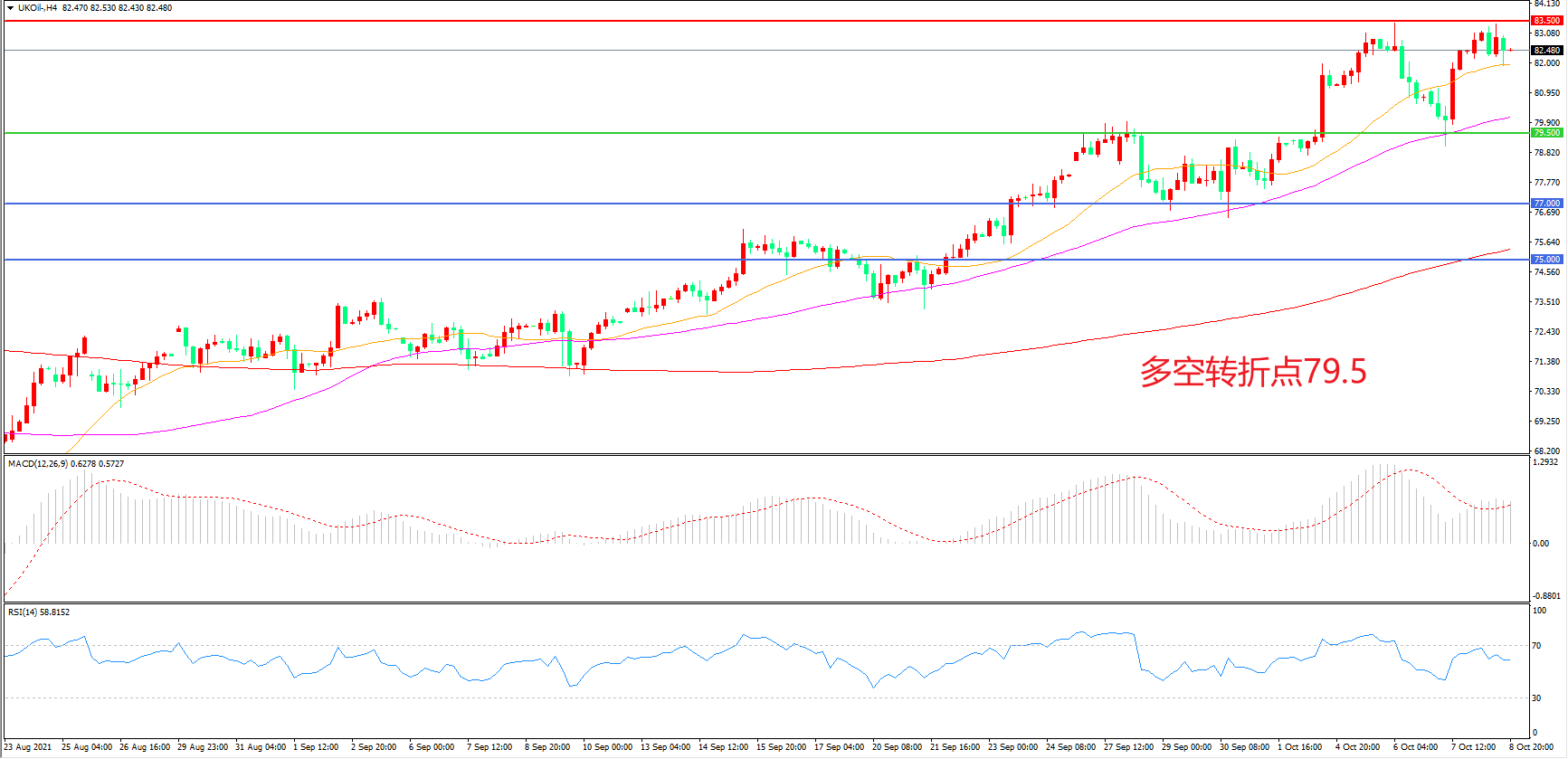 上周五(10月8日),在全球能源危机提振需求之际,OPEC+产油国仍保持偏紧的供应,美国经济数据整体乐观,国际局势改善,进一步提振需求前景,布伦特原油震荡上行,收报82.48美元/桶。此前美国能源部表示,目前没有动用战略石油储备来为不断上涨的油价降温的计划,目前油价正朝着连续第八周上涨的方向前进,这将是自2013年12月以来最长的连续上涨。