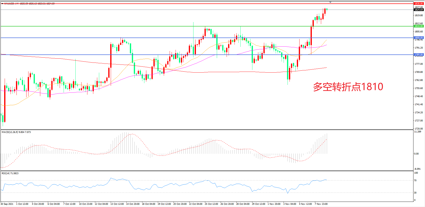 交易策略:在1810.00之上看涨,目标1830.00       1845.00