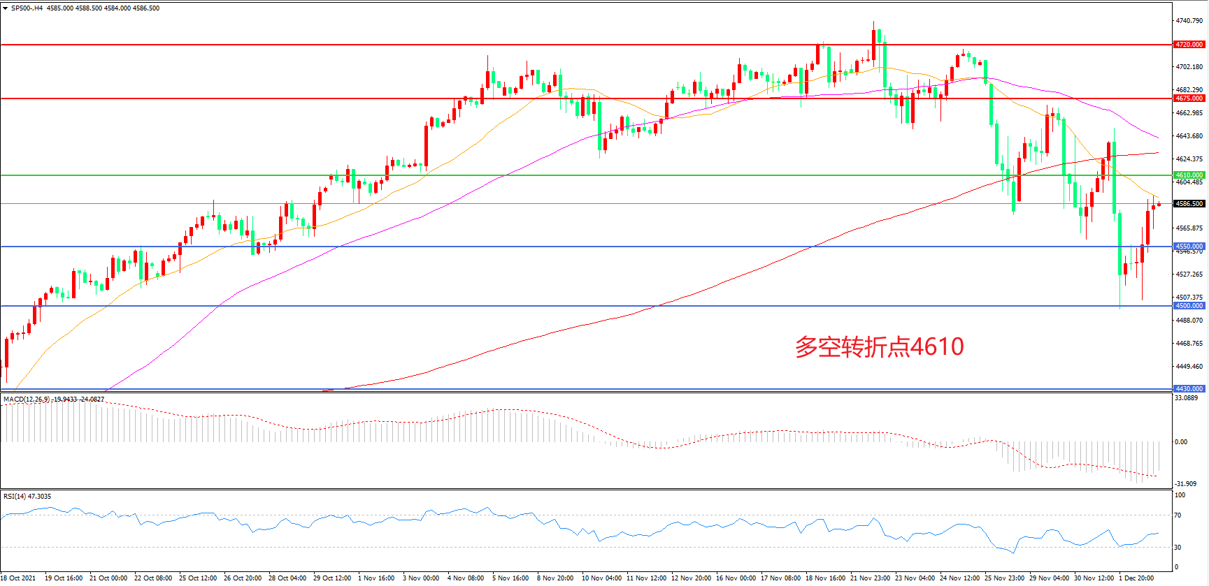 多空转折点:4610.00